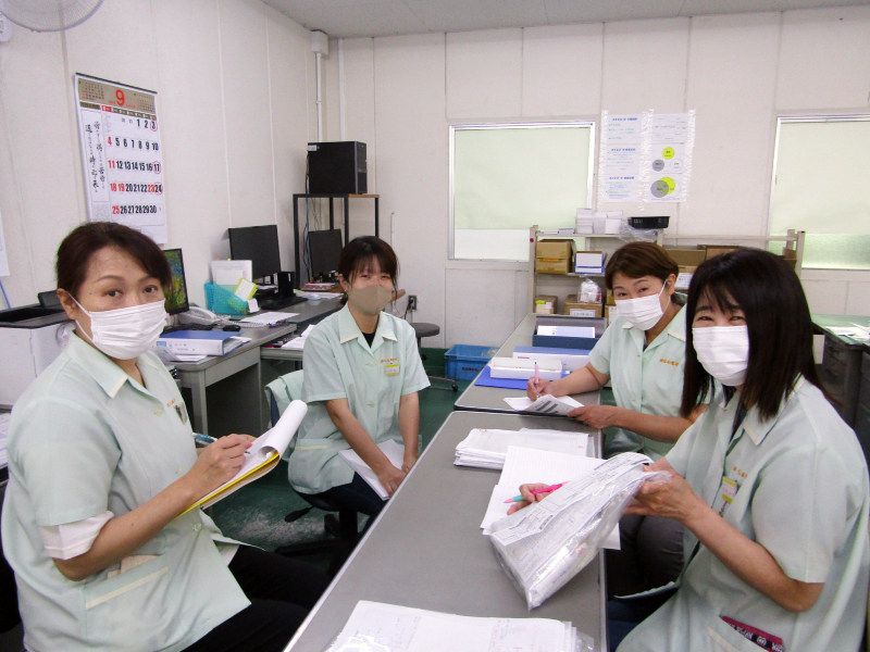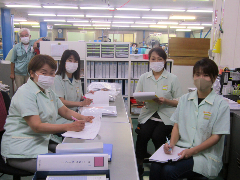 生産管理部門では4名の女性が活躍中。現在は、30代後半~50代のメンバーが在籍しています。